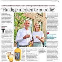 Op dit moment is de bombardino van Franck en Simone te bestellen bij restaurant Broeck in hun thuisstad Oudewater voor 6 euro. Online kost een fles 22 euro.